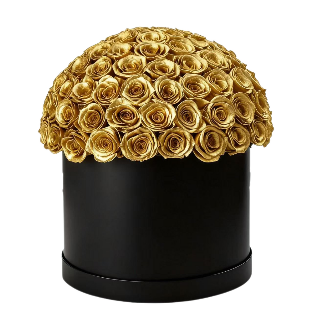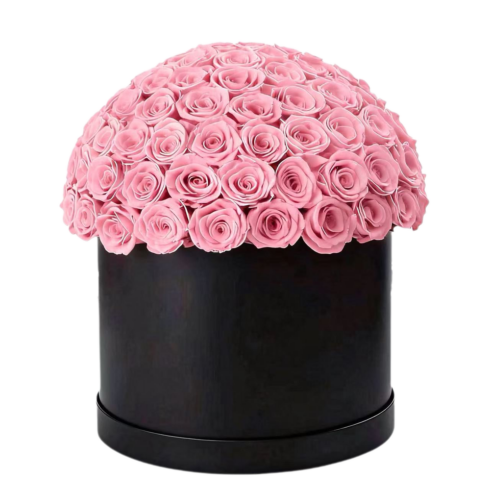 This Dome showcases 45 forever roses, designed to be the perfect centerpiece for your home decor. Hand-picked and hand-crafted by skilled artisans, our Preserved flowers are presented in a chic, vase-like cardboard box. The design exudes elegance and features an embossed gold Floral Isle stamp, adding a touch of luxury.
