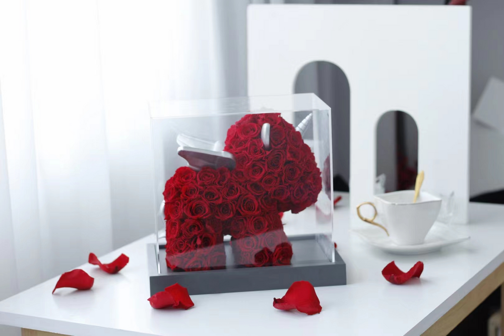 This gigantic unicorn is the most luxurious gift we’ve ever created at Floral Isle! Fully covered our beautiful preserved Roses, this “unbearably” adorable critter comes in at nearly 1 feet tall. Imagine the look of surprise and shock on your sweetie’s face when this huge unicorn arrives for them. If you’re looking to make an impression of a lifetime, this is the gift to give.
