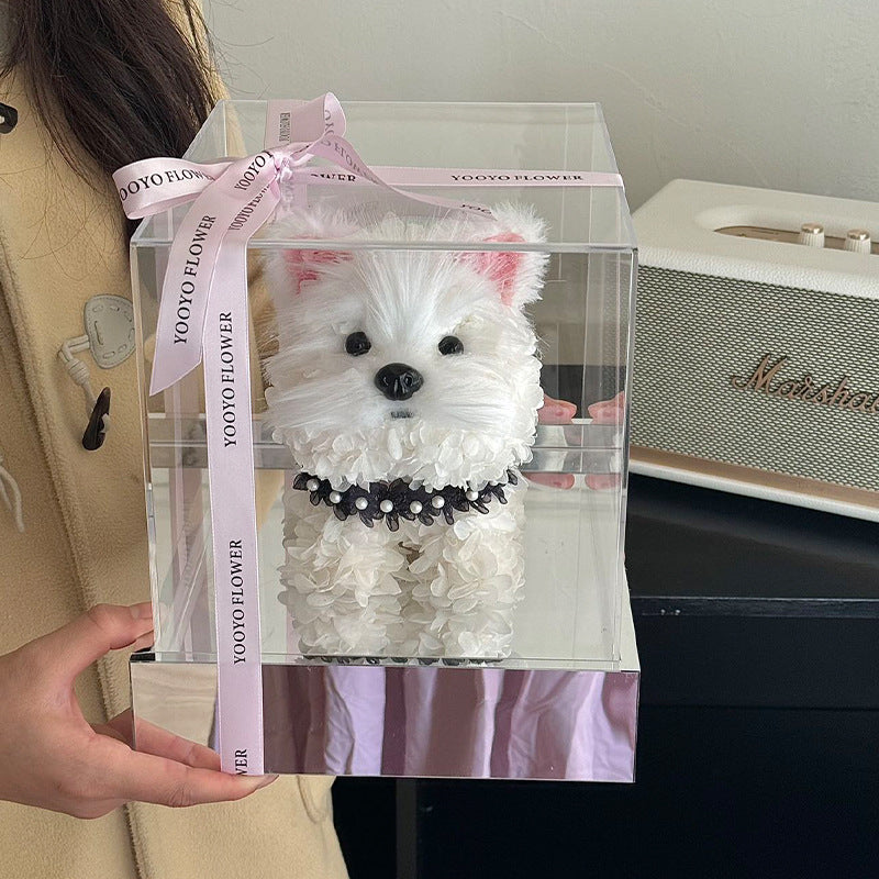 This West Highland Cute Puppy is the most luxurious gift we’ve ever created at Floral Isle! Fully covered our beautiful preserved Hydrangeas , this “unbearably” adorable critter comes in at nearly 1 feet tall. Imagine the look of surprise and shock on your sweetie’s face when this huge dog arrives for them. If you’re looking to make an impression of a lifetime, this is the gift to give.